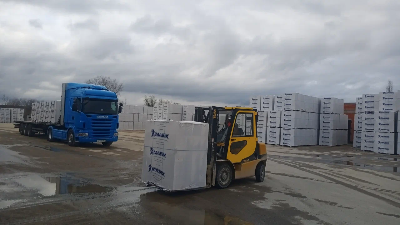 Доставка газобетонных блоков осуществляется с использованием специализированного транспорта, оснащенного манипулятором. Это позволяет быстро и аккуратно доставить материал на строительную площадку.